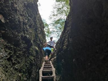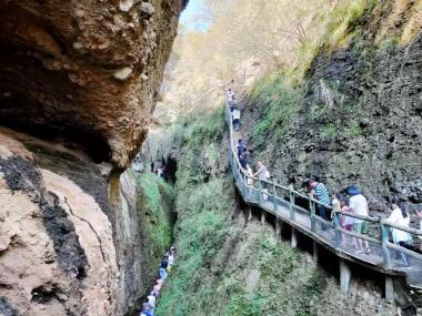 皖西大裂谷位于六安市南边25公里处,原名避王岩,据说因明末清初农民起义军首领张献忠在此作战而得名。整个景区状如三节莲藕,最好玩的便是在峡谷中穿梭攀爬,峡谷两侧峭壁耸立,窄处仅容一人通过,有些地方只是简单地架着垂直铁梯,向上攀爬很有挑战性,...