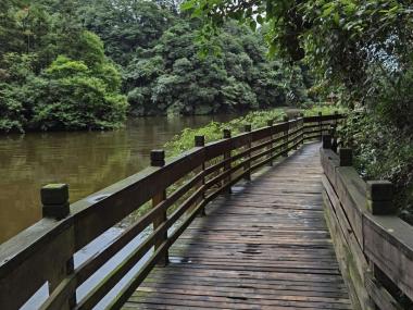 月城湖的湖水来自青城山上老霄顶的小溪,流淌到开阔的山间谷地,成为了一个小湖。这里在丈人峰和青龙岗之间。湖泊四周草木茂盛,湖水碧绿,周围的山谷倒影在水中,景色清幽,十分的舒服。湖中有游船,可以坐船游湖。...