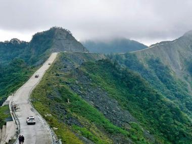 重庆市石柱县七曜山上,从六塘乡到大风门,有一段沿着山脊背修出的公路,两侧都是悬崖,公路就修建在山脊顶端,仿若“天路”。在此公路上开车,从空中俯瞰就像行驶在刀片上,步步惊心,既壮观又惊险。...