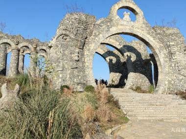 叠石花谷景区分为叠石艺术主题园区和巫傩文化展示园区,地跨杉树湾村和扎营村两个行政村,紧邻G65包茂高速之渝湘高速公路,距离渝湘高速公路板溪出入口仅仅5分钟车程。叠石花谷景区总占地面积3000余亩,呈“一”字型,从北至南,分为叠石区和花谷区。