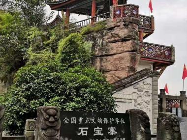 石宝寨位于重庆市忠县境内长江北岸,因此地临江处有一块十多丈高的巨石,相传为女娲补天所剩的五彩石,故称:石宝。明代谭宏起义,曾占据此处以为山寨,石宝寨故而得名。石宝寨倚玉印山而建,倚山势而起,造型奇特。由寨门、寨身、阁楼(寨顶石刹)组成,共12层,全木质结构。...