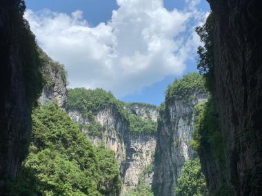 武隆天坑地缝国家地质公园位于重庆市武隆县境内,长江支流乌江下游,属于典型的喀斯特地貌,宏达的天生桥群、面积巨大的天坑、险峻幽深的地缝。天坑景区拥有世界上最大的天生桥群和世界第二大的天坑群。这里真正为人所知,是在它成为电影《满城尽带黄金甲》外景地之后。同时这里也是《变形金刚4》的外景地。游览龙水峡地缝时,先乘坐电梯下到半山,再步行到地缝的谷底,沿岩壁栈道顺暗河前行,沿途处处是瀑布、溪流和原始植被。...