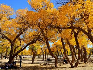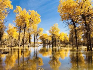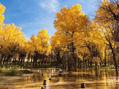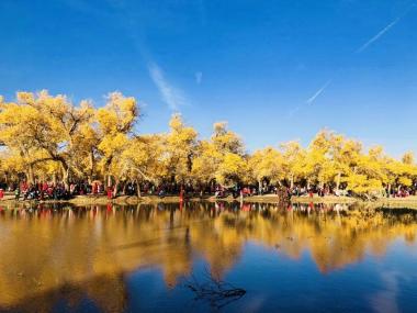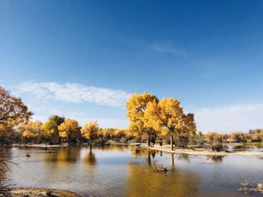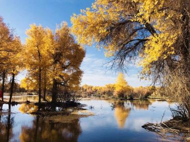 二道桥又称倒影林,胡杨在河的两岸耸立起来,被河水折射出倒影,给人如诗如画的写意景象。二道桥的胡杨林风景最好,因为二道桥的胡杨林都在水边,倒影在水中的胡杨别有一番景象,蓝天白云与金色胡杨映在水中,分辨不出哪儿是天哪儿是地哪儿是水。...