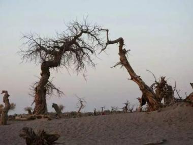 怪树林在额济纳旗达来呼布镇西南28公里处,所谓“怪树林”,是数百年前因自然灾害——极端的干旱而致成片的胡杨枯死,且干燥的环境让胡杨枯而不腐、挺立不倒,才使今人能观赏到形状各异的胡杨造型。...