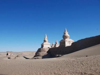 黑城遗址位于内蒙古额济纳旗,是古丝绸之路北线上现存最完整、规模最宏大的一座古城遗址。该城建于公元九世纪的西夏政权时期。公元1372年明朝大将冯胜攻破黑城后遭废弃。至今城内还埋藏着丰富的西夏和元代等朝代的珍贵文书。近年来,由于周边地区沙化严重,流沙从东、西、北三面侵蚀黑城,许多遗址已埋于沙下。现已展开抢救性保护黑城遗址工作。...