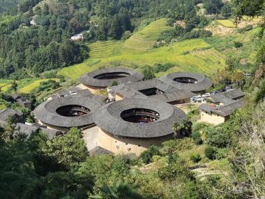 田螺坑土楼被称为是福建土楼的标志性建筑,也是福建土楼的名片,由于它的外形是四座圆楼簇拥着一座方楼,所以也被人们形象地称为“四菜一汤”。土楼的外形像是一朵怒放的梅花,美妙绝伦,璀璨夺目,又像是一支气势磅礴的五重奏交响曲,在青山秀水间激越地奏响。...