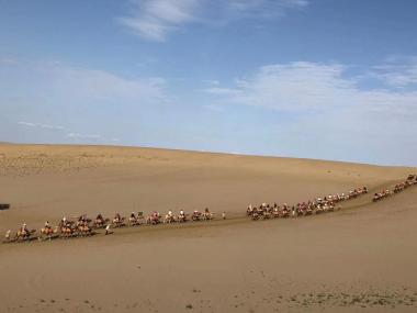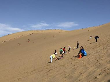 敦煌鸣沙山是国家级重点旅游风景名胜区,处于库姆塔格沙漠边缘,与宁夏中卫县的沙坡头、内蒙古达拉特旗的响沙湾和新疆巴里坤哈萨克自治县境内的巴里坤镇同为中国四大鸣沙山。沙峰起伏,人们顺坡滑落,便会发出轰鸣声,称为“沙岭晴鸣”,为敦煌八景之一。...