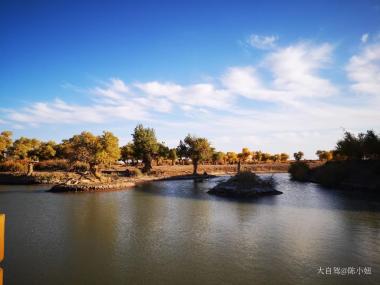 金塔胡杨林位于甘肃省酒泉市金塔县城以西的潮湖林场,那里有着上万亩人造胡杨林,周边分布大面积的沙枣树、白杨、红柳等大西北特有的树种,该胡杨林分布密集,长势良好,规模居全省之冠,金秋十月的胡杨,绿色的树叶有的已经变黄,已经变黄的胡杨树,在湛蓝的天空下,在荒芜的沙漠中如阳光一般明媚灿烂。...