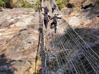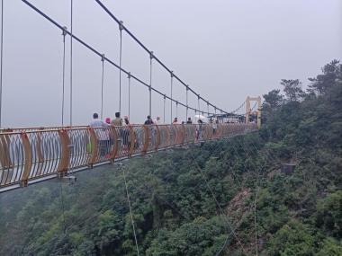 金子山玻璃栈道建在海拔1417米的最高峰上,是目前全广东海拔最高的玻璃天桥。玻璃观景台距离地面最高处300多米,距离谷底的距离至少在600米以上。观景廊桥则环绕顶峰的四周而建,悬空建在悬崖绝壁上,玻璃下面同样是深不见底的悬崖。...