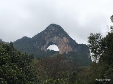 月亮山是阳朔境内奇景,是一座拱形山峰,山顶下方有一个贯穿的大洞,好像一轮皓月,浑然天成。从不同的角度看这座月亮山,此洞形状也随着不断变化,非常有趣。月亮山高约380多米,游人可顺着一条800多级的登山道直达山顶月洞。月洞面积很大,高宽各有50米,而山壁却只有几米厚。洞的顶部挂满了形状各异的钟乳石,其中两块很像月宫里的吴刚和玉兔。...