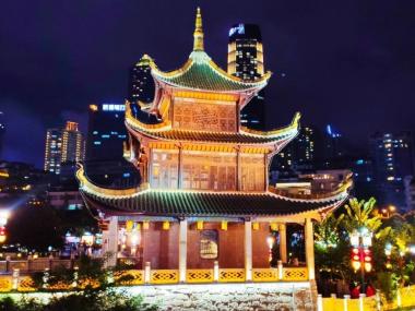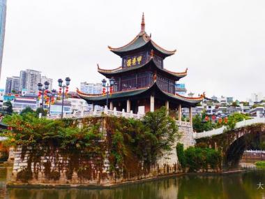 甲秀楼可谓是贵阳的标志了,始建于明朝,后楼毁重建改名“来凤阁”,凡是来过贵阳的人都会登临观景,三层的小楼屹立在鳌矶石上,面前是流淌着的南明河。甲秀楼的夜景尤其漂亮,从远处望去,灯火辉煌。走过连接甲秀楼的浮玉桥,即是翠微园,园内亭台水榭,颇有江南之风。甲秀楼朱梁碧瓦,四周水光山色,名实相符,堪称甲秀。...