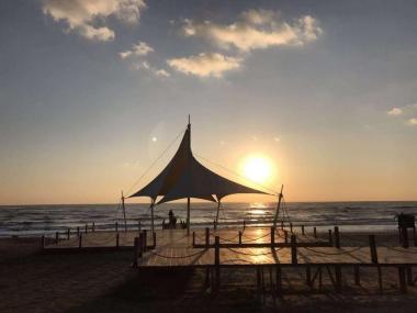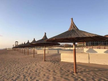 北戴河阿尔卡迪亚滨海度假酒店后面的专属海滩。...