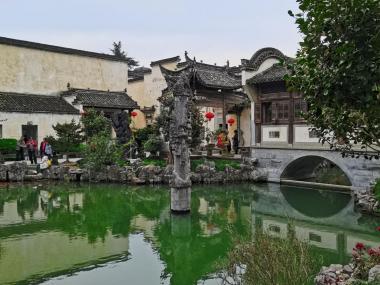 徽商大宅院又名“西园”,是将散落在全县范围内濒临坍塌的26座明末、清代等时期具有徽派特色的建筑进行拆迁和修缮,按照“复原”的原则,整体搬进了西园。大宅院内的古徽州“三雕”(石雕、木雕、砖雕)数量众多,不少是从民间征集收购。徽商大宅院整座古建筑群集牌坊、戏台、亭阁、花园、水榭等于一体,为组合式的宅第群体,有宅第,房屋,天井,柱子等众多。
