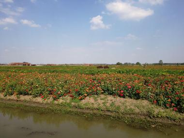 兴化市千垛菜花风景区内万寿菊进10月中入盛花期,千姿百态的万寿菊竞相开放、争奇斗艳。“千垛”以垛田的形式依水呈现,港汊密集,河如阡陌,宛若千岛。每年6月当地在油菜收获后首次种植万寿菊,形成”春赏菜花秋看菊”的特色景观,吸引海内外游客一睹美景。...