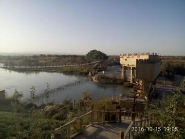 达瓦昆沙漠风景区有面积2万多亩的天然流动湖泊水面,有200万沙漠环绕湖泊,可谓沙水相依,碧波荡漾.新建的欧式风情别墅,极具维吾尔族风情的毡房和民族风情园点缀湖畔.夏日里,湖光潋滟,烟波浩渺的湖面上船影点点,游艇的马达声与游客的欢笑声打破了亘古的沉寂。湖两畔已建成独具特色的欧式风情别墅和极具新疆维吾尔族风情的毡房、民族式餐厅、旅游纪念品店、风情园。...