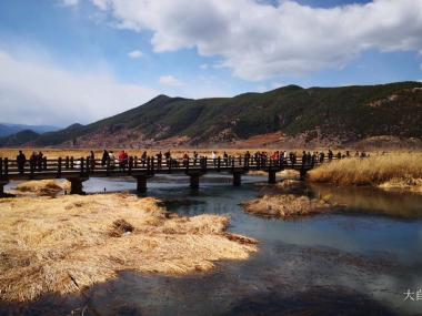走婚桥位于泸沽湖东侧,横跨在芦苇飘荡的草海之上,是泸沽湖周围的一处知名景观。这里的摩梭族奉行“男不娶,女不嫁”的走婚习俗,而走婚时男子都会经过走婚桥去往女方家里,因此这座桥又称“鹊桥”。走婚桥长约300米,两侧是生长在草海水中的大片芦苇,走在桥上,满眼都是碧绿的清新风景。...