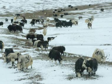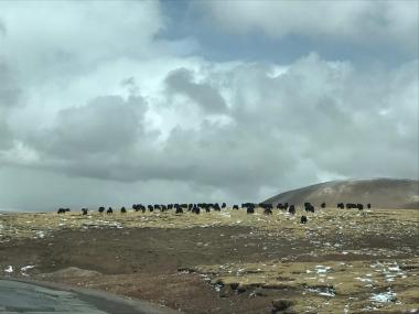 嘉措拉山口也称定日界,这里也是珠峰国家级自然保护区的山口,巨大的保护区标牌竖立在公路上,无数的经幡迎风飘扬。 从珠峰...