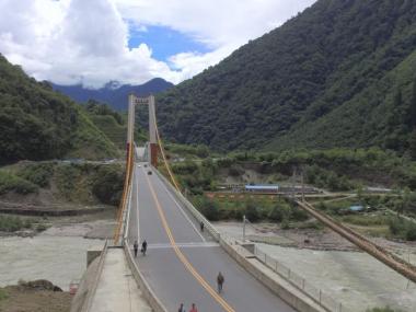 通麦大桥是川藏公路318国道的咽喉工程,是一座临时保通性工程。大桥设计为双塔双跨悬索桥,跨越帕隆藏布的支流易贡藏布,...