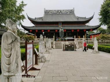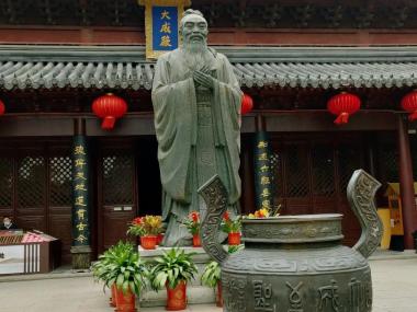 大成殿位于大成门的北面,是祭祀孔子的正殿。始建于北宋景祐元年(公元1034年)大成殿高16.5米,长28.4米,宽22米,奠基座高1.5米,殿内正中悬挂一幅全国最大的孔子画像,向下有木龛,龛内主要有“大成之圣文宣王之先师”牌位,两旁配有孟轲、曾参、颜回、孔伋四亚圣汉白玉石像。用于祭祀的古乐器置于孔子像前...