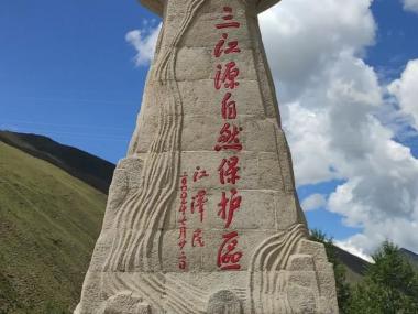 三江源纪念碑位于玉树藏族自治州结古镇通天河畔,高6.621米,基座面积363平方米,碑的正面镌刻着江泽民题写的“三江源自然保护区”碑名,背面是用汉、藏文雕刻的原全国人大常委会副委员长布赫撰写的碑文。...