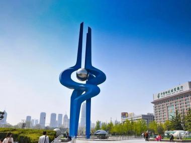泉城是济南的别名,整个广场的设计紧扣“泉”这一主题,南北两侧是狭长的绿化带,正中间坐落着泉标,蓝色高耸的钢制雕塑和中间的铁珠构成了篆书“泉”字的造型,你可以合影留念。...