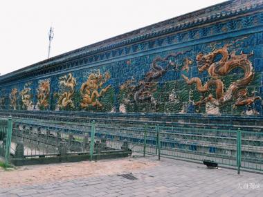 九龙壁原是明初代王朱桂府前的照壁,在现存最享盛名的三座九龙壁中,是建筑年代最早、尺度最大、而又最富艺术魅力的一座(另两座在北京,一座在北京北海公园,一座在北京故宫皇极门前,均建于清乾隆时代。较大同九龙壁要晚三百五十至四百年。)。大同九龙壁,壁高8米,厚2.02米,长45.5米。壁上均匀分布着9条飞龙,以飞腾之势,跃然壁上,生动逼真。...