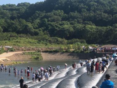 这里有网红阶梯瀑布,水流经过层层叠叠的水坝,非常壮观,水流很大,可以尽情的玩耍,适合带孩子们游玩。 鹅卵石铺筑的坝顶蜿蜒曲折的叠式堰坝,倾泻而下的水流形成层层叠叠的白色水花,成群的游客或嬉水,或拍照,非常热闹。...