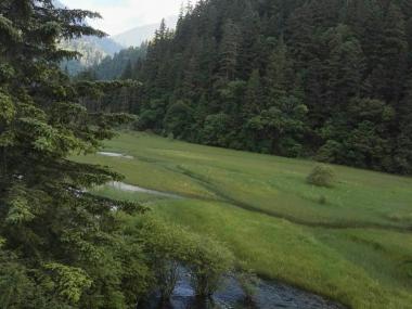 箭竹海是一个深约六米的湖泊。湖面开阔绵长,湖畔箭竹茂盛、高耸入天,湖水中山峦对峙,竹影摇曳,充满生气。箭竹海中有一种奇特的景观,即是湖水中有一些钙化形成的枯木,有时枯木半露出水面,在上面还会有新生的树苗扎根,这种现象称为腐木更新,或枯木逢春。电影《英雄》中残剑与无名比剑的片段就是在这里拍摄的。...