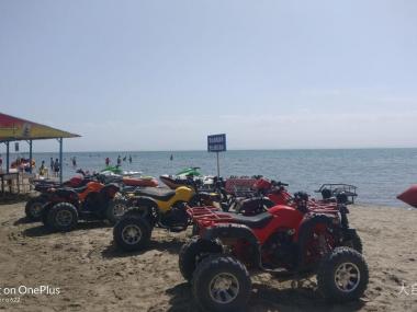 金沙滩旅游景区,位于新疆巴州和硕县乌什塔拉乡314国道以南23公里处,离库尔勒市160公里。景区位于中国最大的内陆淡水湖博斯腾湖东北岸,是以大湖为基础建设的一个类似海滨沙滩的游乐区,每到夏季时,这里的风光与海滨一样。因为沙子是金黄色的故称为金沙滩,湖水也非常的清澈,又被称为新疆的夏威夷。...