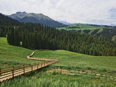 江布拉克是哈萨克语,意为“圣水之源”,景区由自然景观、水域风光、生物景观三种资源类型组成,雪山冰川、高山和亚高山草甸、中山森林、低山草原景观别具特色。在江布拉克草原主要是观看漂亮的自然风光,这里有雪山围绕的草原、景色优美的木制栈道观景路线,还有开阔的田野等,一派田园牧歌的景观。每到六七月份,草原上野花遍地,更是拍照摄影的好时机。...