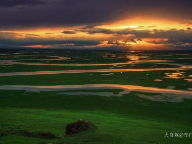 站在天鹅湖畔巴西里克山顶眺望,古老的开都河从天边缓缓向你走来。这就是“此景只应天上有,人间能有几回现”的九曲十八弯。它像是泉水和雪水汇聚而成的仙女的飘带穿过天鹅湖,更像是上苍为巴音布鲁克这个翡翠王国披上的圣洁的哈达。当夕阳从云缝中把万道霞光射向草原,落日摇金,蜿蜒如蟒的九曲十八弯就映出了后弈射下的那九个太阳。...