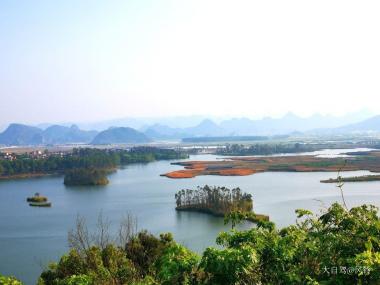 摆龙湖群山环绕,山中有水,水中有湖,湖面呈扇形分布,湖中有7座小岛和3个半岛,被游客称为“云南的千岛湖”,岛上林木茂密,候鸟栖息,四季鸟语花香,慢游于湖边很是清新。...