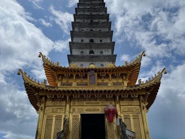 勐焕银塔,又称千佛银塔,位于云南省德宏傣族景颇族自治州芒市仙池路西200米处,是芒市的地标建筑之一。银塔始建于2010年,是一座新建的南传佛教建筑,塔高66米,直径46米,规模宏大。塔身由80个小塔构成,每一层都巧妙地布设了数量不等的小塔,第一层由12个小塔组成,象征着十二因缘相续轮回。...