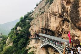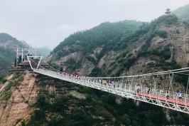 可乘坐索道(自理70元/人往返)前往九龙山玻璃栈道(如不坐索道,可自由爬山约2小时),新建西北最长280米高空玻璃悬索桥;