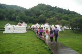 到达后游览【大水川景区】乘坐景区交通车(必须产生,50元/往返)(游览2个半小时左右),是一处天然的牧场,曾经是皇家马场,沿山谷前行一路多见散放的牛马,个个膘肥体壮。老牛在慢条斯理地吃草,牛娃娃眯着眼睛卧在阳光下晒太阳,还有那自由放牧的马群、牛群,共同构成一幅天籁之景。