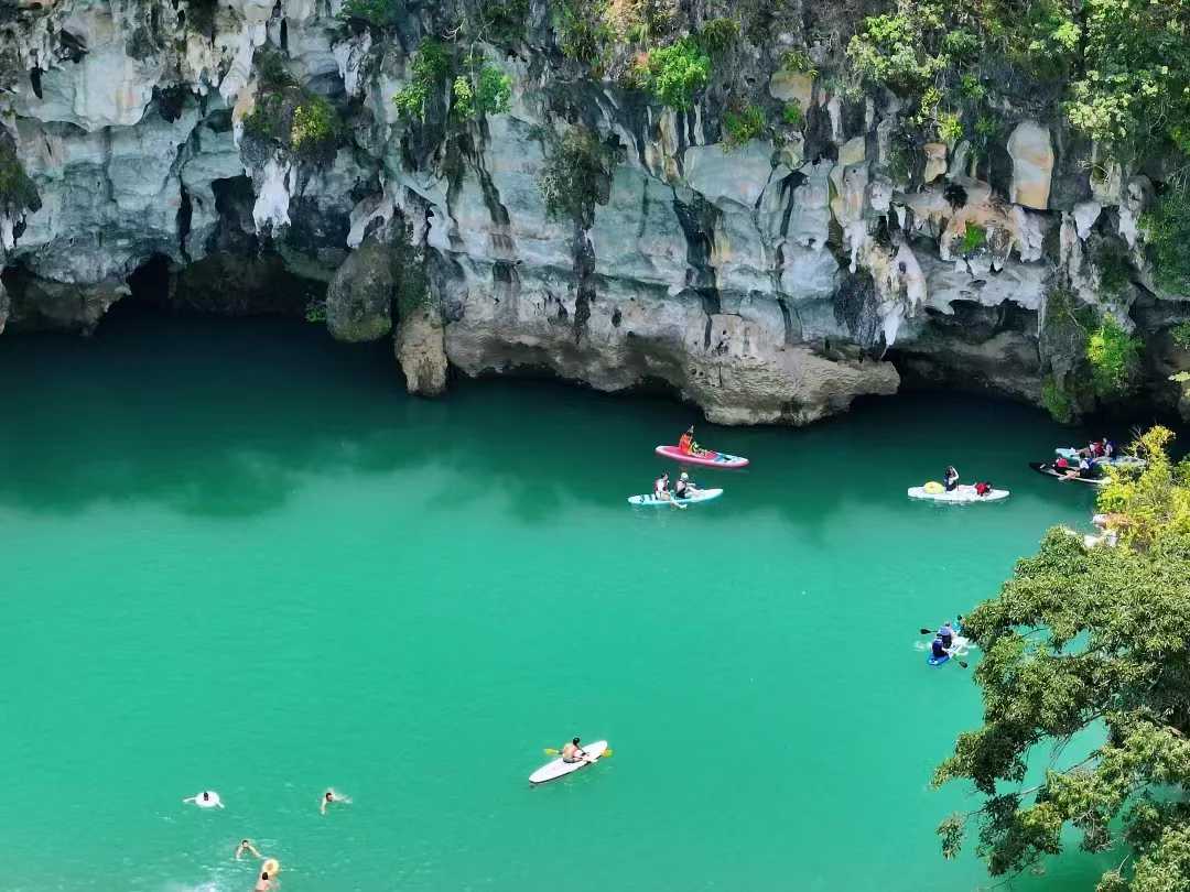 ❤巴马百魔洞--洞中雾气缭绕,变幻无穷,更使这个巍巍景观显得诡秘多姿。这些巨大的钟乳石塔,是经过几亿年岩溶发育的结晶,其中最大的石笋需十人方能合围,最高的石柱达39米,实属“天下之最”。