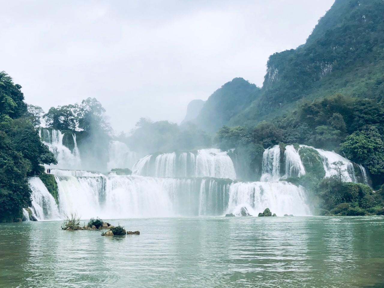 ❤德天瀑布--远望似缟绢垂天,近观如飞珠溅玉,透过阳光的折射,五彩缤纷,那哗哗的水声,振荡河谷,气势十分雄壮。