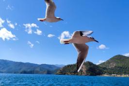 泸沽湖古称鲁窟海子,又名左所海,俗称亮海,位于四川省凉山彝族自治州盐源县与云南省丽江市宁蒗彝族自治县之间。湖面海拔约2690.75m,面积约48.45km2。湖边的居民主要为摩梭人,也有部分纳西族人,摩梭人至今仍然保留着母系氏族婚姻制