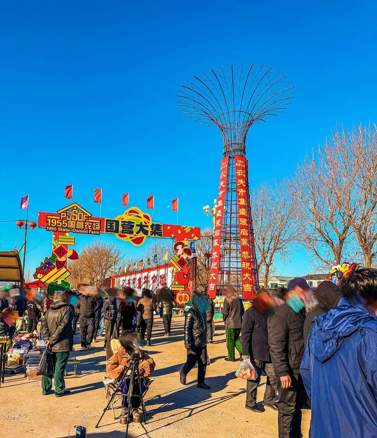 如果说国营农场是盘锦农垦记忆的精神内核,那么农场大集便是这份记忆最鲜活的烟火延伸。晨露尚未消散,大集的锣鼓声便已唤醒街巷,吆喝声、议价声与欢笑声交织成最动人的生活交响。