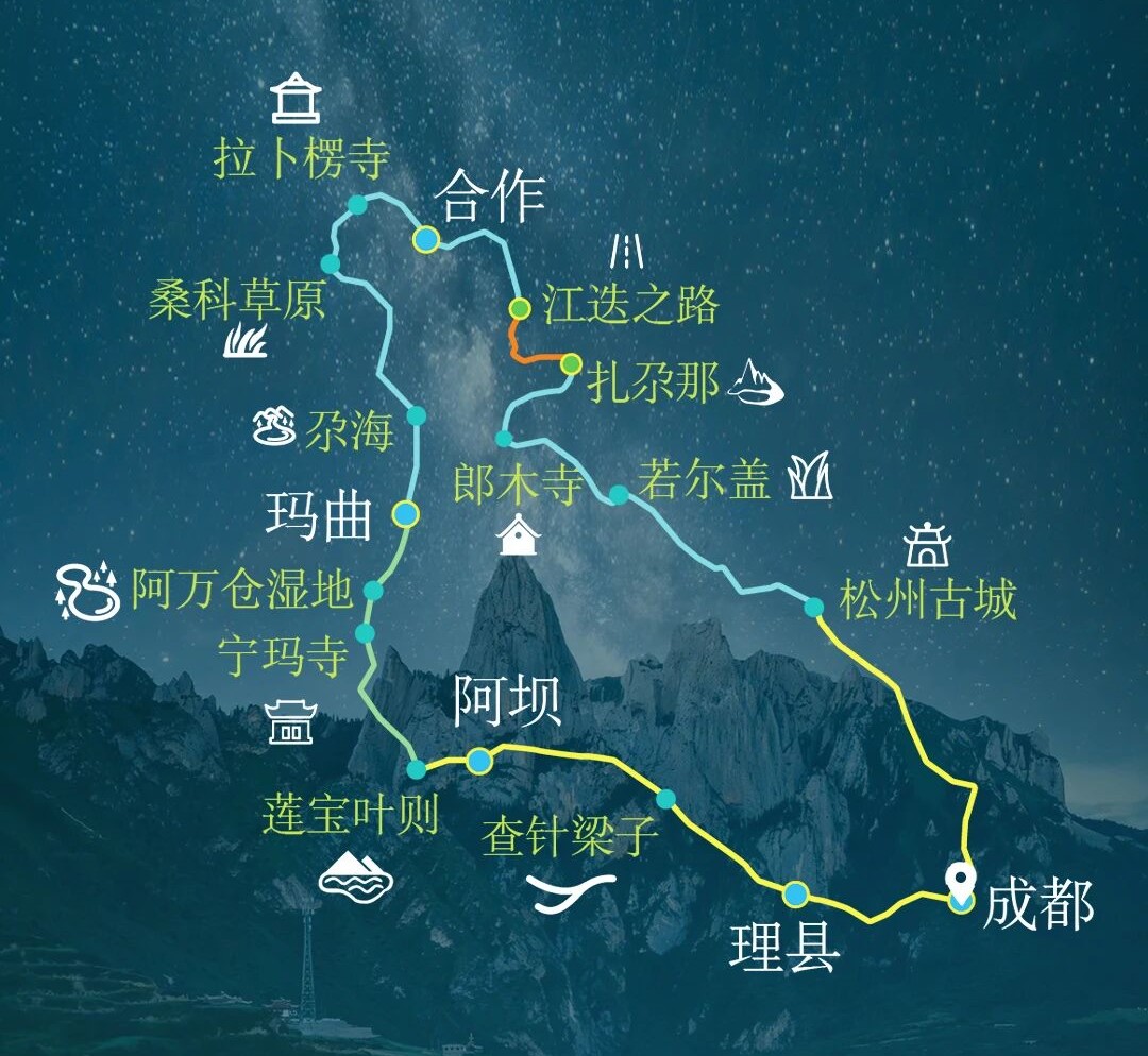 成都川西甘南7日自驾游路线图: