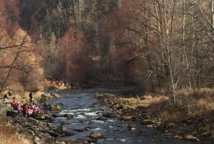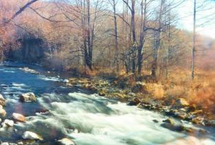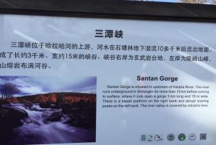 三潭峡大峡谷到大门二十五公里,依旧很漫长,出了大门,必须原路返回,一头转入林间土路,路面起起伏伏,前后车在这路上慢慢汇集在了一起,零星的车变成了车队,浩浩荡荡,车不分好坏,只有颠簸,没有超车。该景点主要沿着哈拉哈河,号称有三个潭,尽头是哈拉哈河的源头,几近枯竭