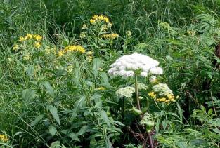 三潭峡有水有树有花有草。兴安第一松、兄弟树、白桦树,还有各种花花草草,植被非常丰富。哈拉哈河的源头就在这里。