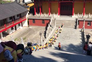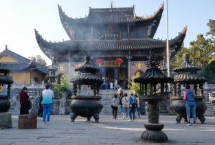 九华山是佛教文化与大自然风光完美融合的结晶,来此洗涤心灵,没有商业化气息,由此分为“肉身宝殿”“化城寺”“百岁宫”“天台景区”“花台景区”等景区,每个寺庙都有三柱免费的香供给游客,因此香火旺盛,三拜九叩的人还真不少。