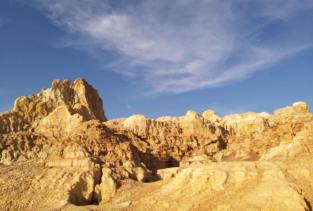 新疆五彩滩被称为上帝遗落人间的调色板,激猛的河流冲击以及狂风侵蚀,形成了悬崖式雅丹地貌,河岸岩层抗风化能力强弱不一,轮廓便会参差不齐,而岩石含有矿物质的不同,又幻化出种种异彩,因此得名“五彩滩”。