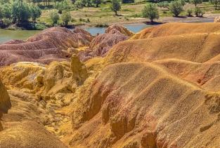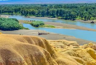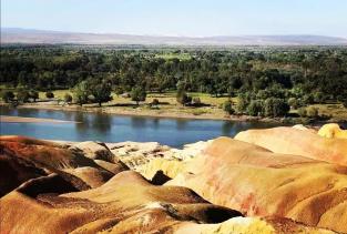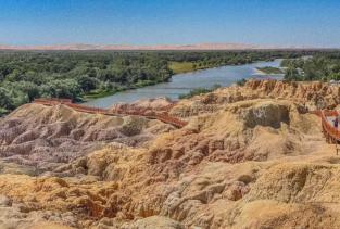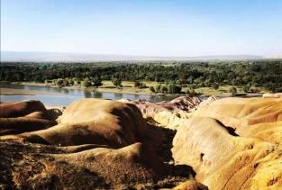 烈日炎炎夏去五彩滩自驾游,虽然热,但是真的看到了如调色板的五彩滩。五彩滩集雅丹和丹霞于一体,映衬于蓝天下的雅丹体,仿佛一副金黄的画卷,五彩丹霞,平静清澈的额尔齐斯河和绿油油的白桦林映衬出于张掖丹霞不一样的景致。