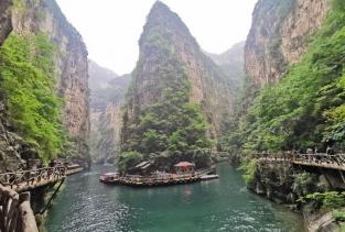 八泉峡被称为“低头九寨沟,抬头张家界”,位于山西长治壶关太行山大峡谷中段。超美的峡谷,自然形成的景观,这次我们也是跟团走的。因为这边是山区,景区也相当大,建议自驾游的盆友,还是买通票。我们是景区入口买门票,然后在开车走了大概20分钟左右到的景点,然后直接坐观光车,司机师傅会直接把你拉到一个坐游船的码头,超级凉快,心情也很好。 峡谷里的水很清澈,开船的小哥,也很帅气,坐游船的感觉好像是,看不到尽头,前面还有很多的美景,水是蓝色的,天空也是蓝色的,山是绿色的,一切都是美好的样子。重头戏—缆车,每个车可以容