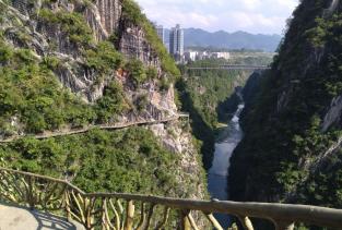 芭拉胡,土家意语“峡谷”,是黔江大力开发的景区之一,栈道可以一走,说是垂直落差有500米,觉得还不够刺激~门票价格70,很多设施都很新。很好的精致,媲美美国科罗拉多大峡谷!推荐城市峡谷。黔江“芭拉胡”自然融合度高,气势宏大。登高远望,恰似一条绿色丝绦,将老城新城逢合在一起,绘就一幅名副其实的“城即景、景即城”的水墨丹青。