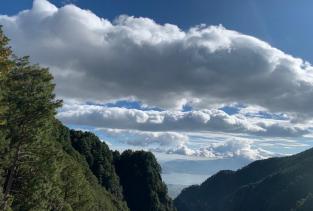 远远的能够看到苍山,非常的壮观,而且绵延属好长。我们在山西的一个小公园里边哗啦哗啦地突然特别有意境,因为这边的云彩比较低啊,但山形成了非常鲜明的对比。