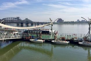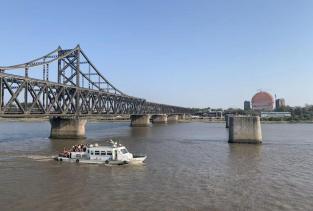 在酒店就可以看到鸭绿江断桥的全貌,于是便省了上桥的门票钱,对面就是朝鲜,我们的人坐着快艇看他们,他们的人也坐着快艇看我们,他们很热情,纷纷向我们挥手示意。