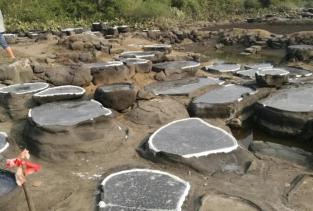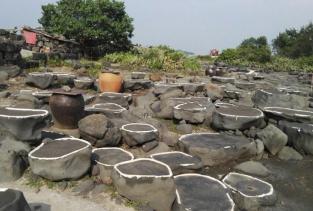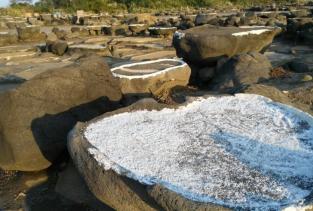儋州千年古盐田非常值得去,听说现在只有三十多户人家会晒这种老盐了,很多年以后可能只看到光秃秃的大石头在这儿,上有凹槽不知何用。只是天不作美,匆匆切匆匆走,见识到了制盐的过程,可以说是不虚此行。